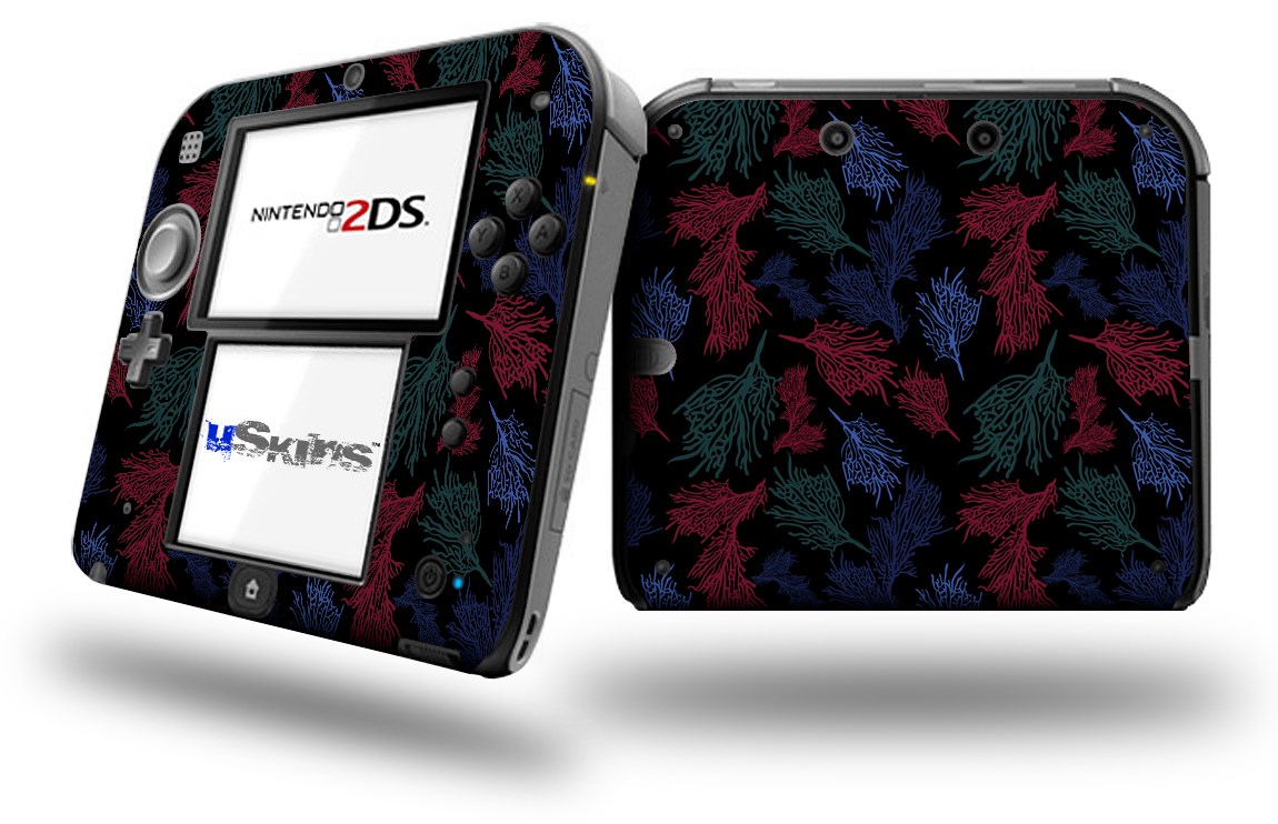Floating Coral Black - Decal Style Vinyl Skin fits Nintendo 2DS - 2DS NOT INCLUDED