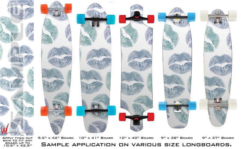 Our longboard skins are made so that one size fits boards up to 10” wide x 42” long. This means after applying the skin it you will trimming to fit you’re the shape of your board with a sharp utility knife.
