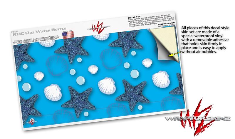 Skin Decal Wrap for RTIC Water Bottle 17oz Starfish and Sea Shells Blue Medium (BOTTLE NOT INCLUDED)