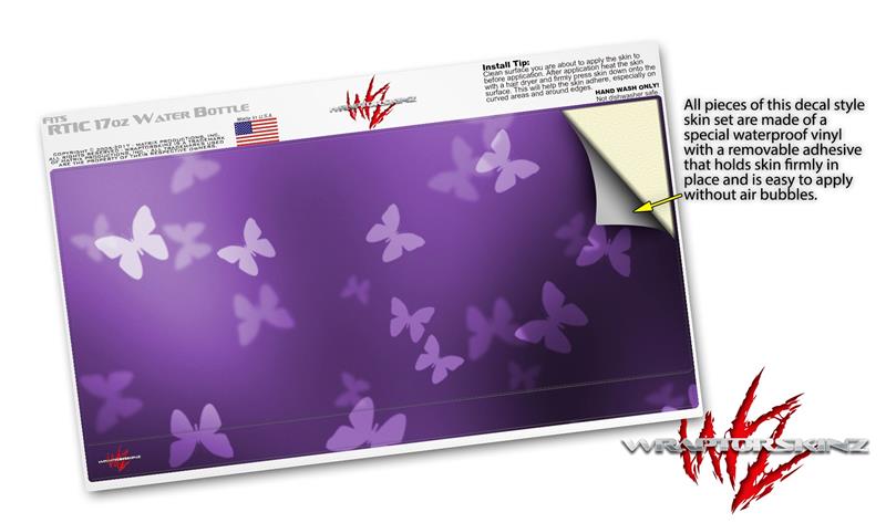 Skin Decal Wrap for RTIC Water Bottle 17oz Bokeh Butterflies Purple (BOTTLE NOT INCLUDED)
