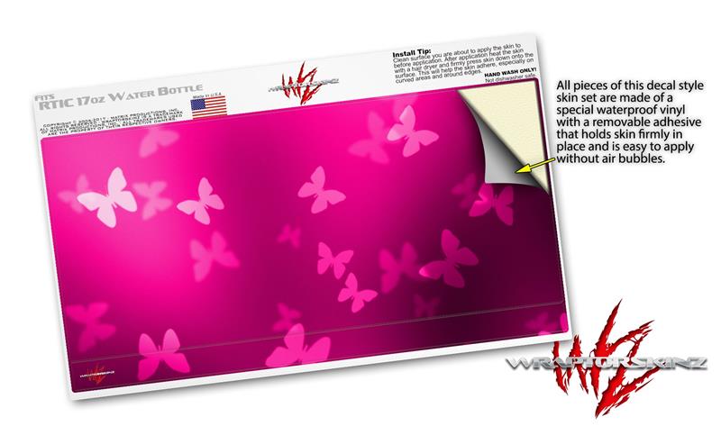 Skin Decal Wrap for RTIC Water Bottle 17oz Bokeh Butterflies Hot Pink (BOTTLE NOT INCLUDED)