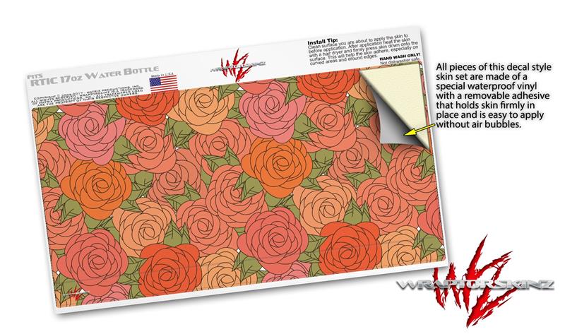 Skin Decal Wrap for RTIC Water Bottle 17oz Flowers Pattern Roses 06 (BOTTLE NOT INCLUDED)