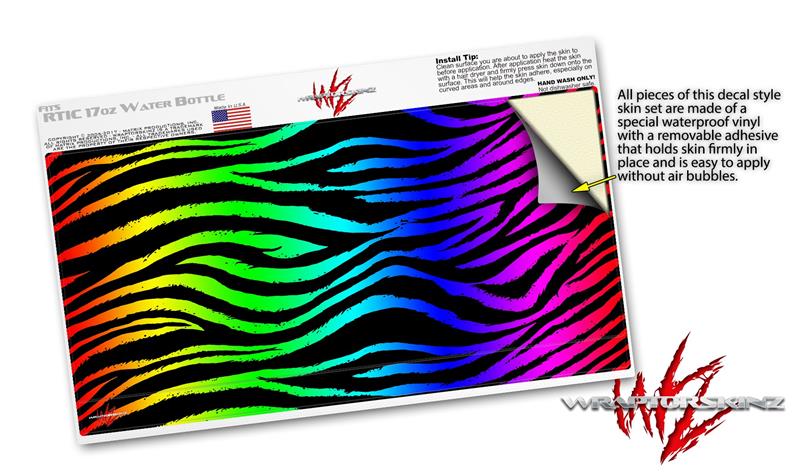 Skin Decal Wrap for RTIC Water Bottle 17oz Rainbow Zebra (BOTTLE NOT INCLUDED)