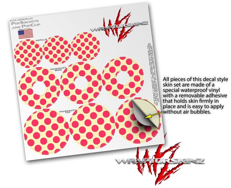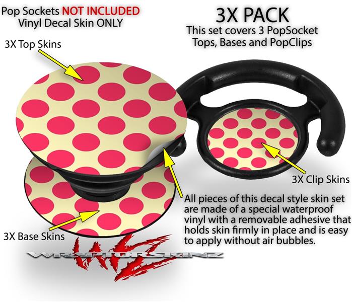 Decal Style Vinyl Skin Wrap 3 Pack for PopSockets Kearas Polka Dots Pink On Cream (POPSOCKET NOT INCLUDED)
